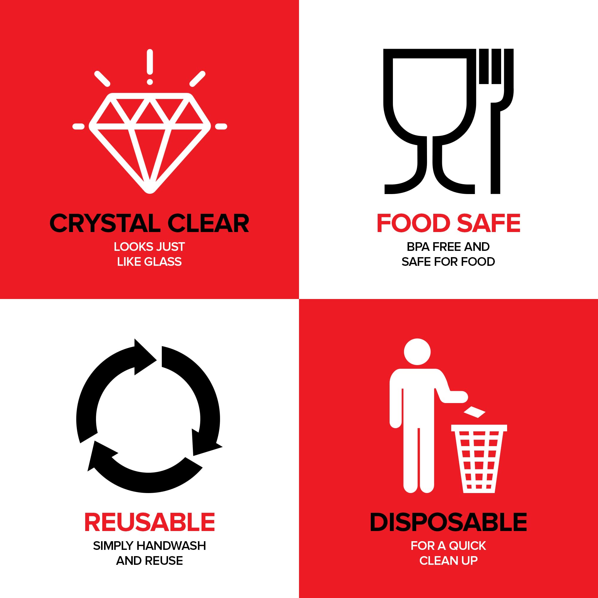 - BPA-Free: Made of durable polystyrene, our candy table containers are food safe and disposable. Toss them in the trash when you're done, or simply hand wash if you'd like to reuse them.