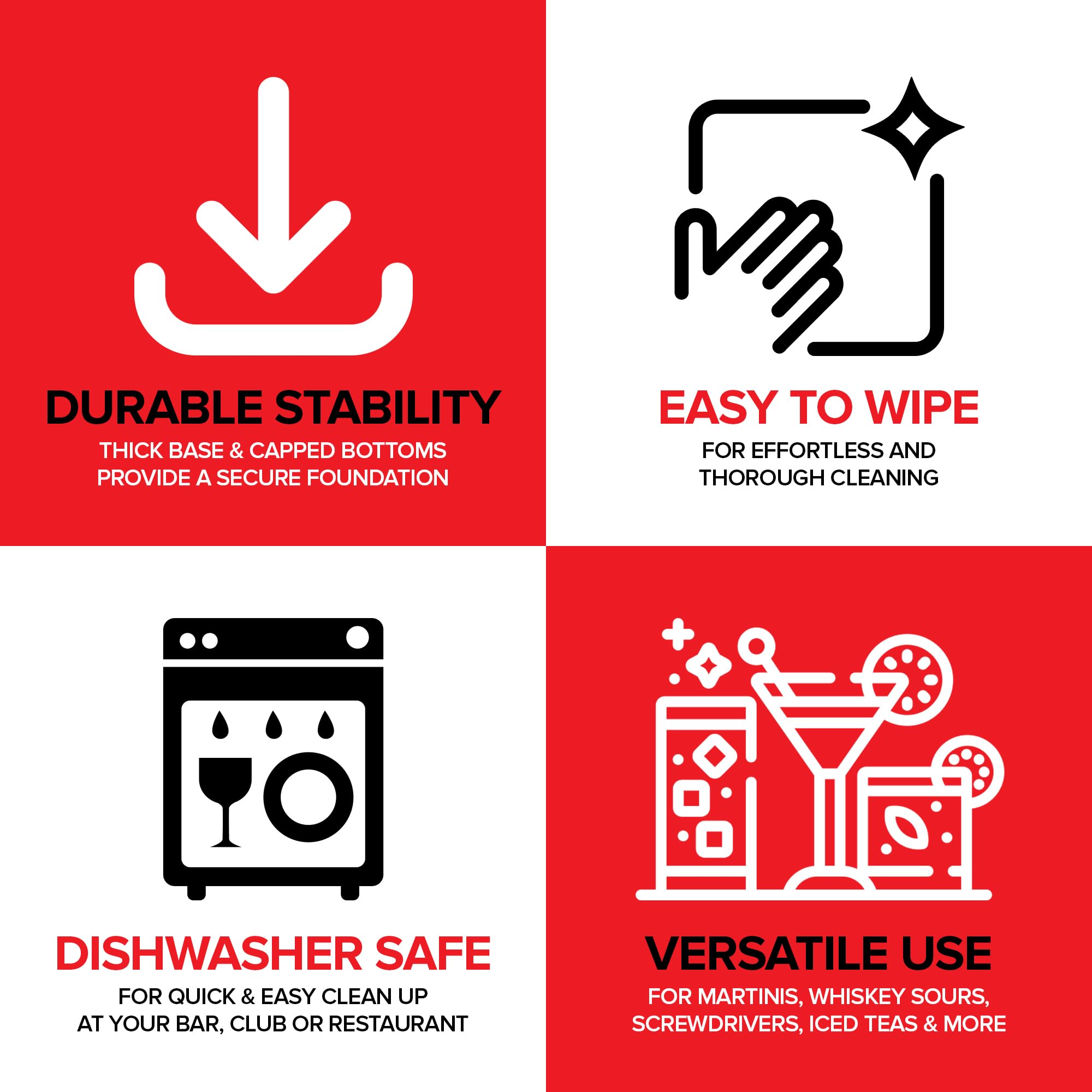 • Premium Quality: Constructed from smooth, weighted steel, the shakers will remain temperature controlled and corrosion resistant; their thick base and capped bottoms provide reliable & durable stability in bustling bars or restaurants