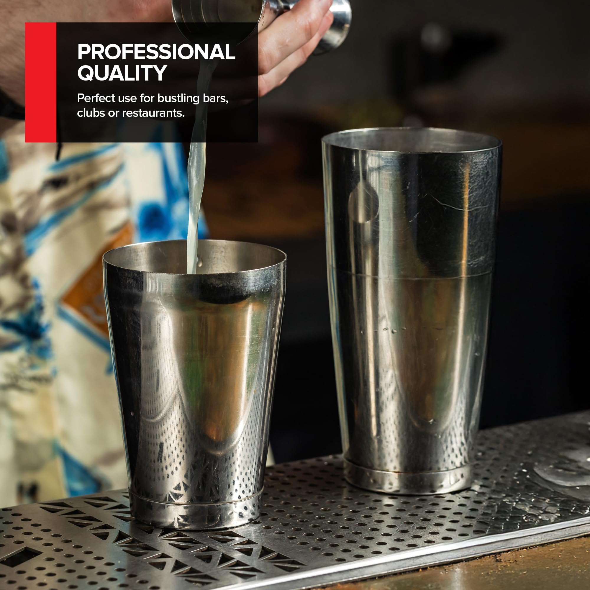 • Professional Drink Mixing: You can enjoy the professional quality of these drink making essentials at your bar, club, restaurant, or home; With a 2 pack boston drink mixing set, you can effortlessly shake up your favorite cocktail or martini anywhere you'd like