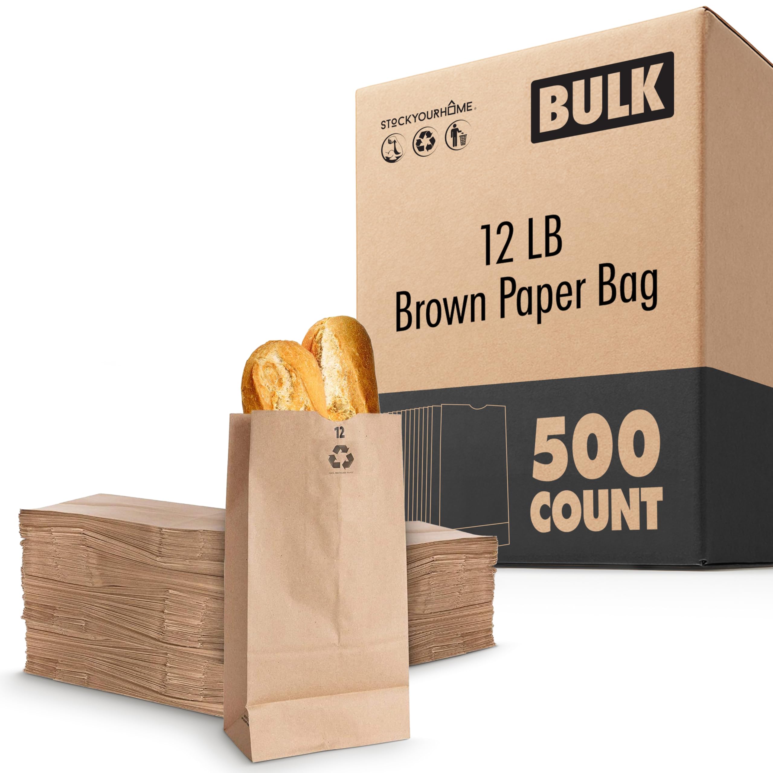 - Great Value Pack: Our value pack comes with 500 kraft brown paper bags with a 12 Lb capacity. Dimensions: 7 1/16
