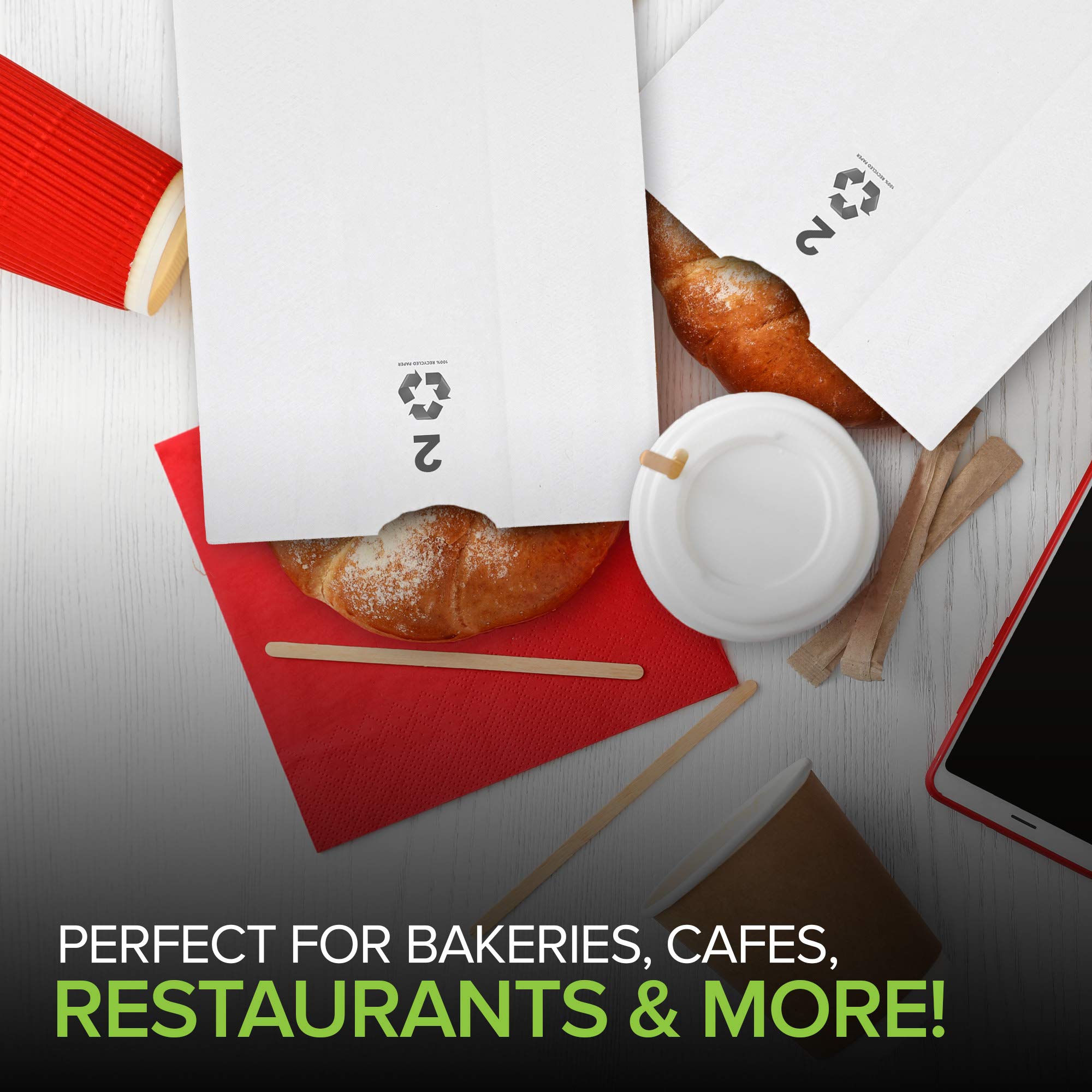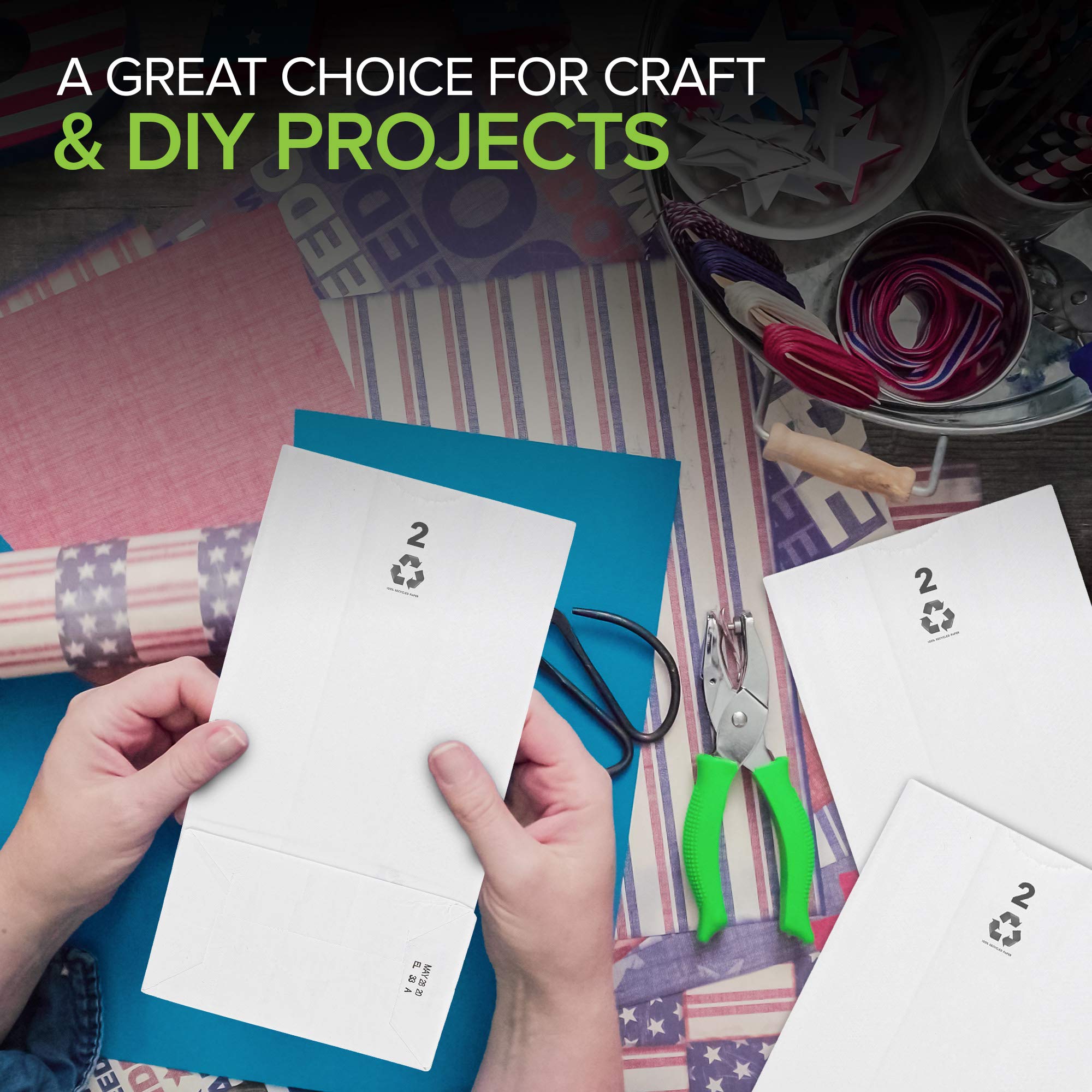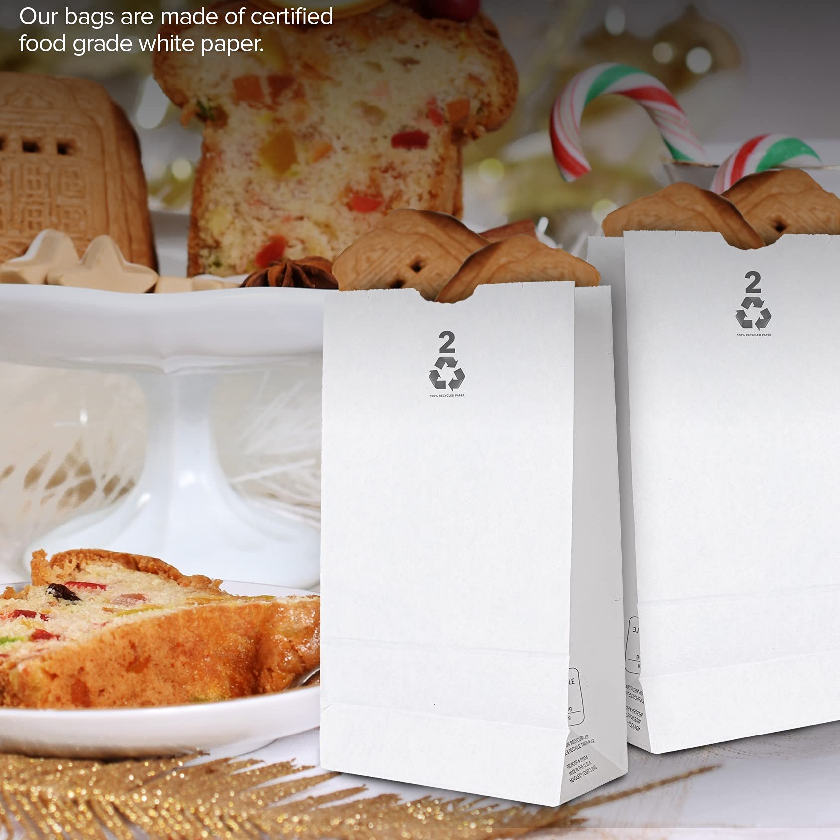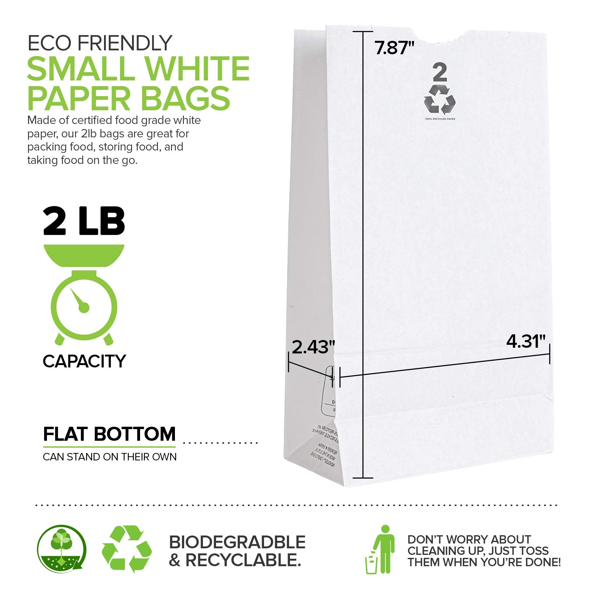 - Premium Quality: Made of 100% recycled paper construction, our 2lb bags are great for packing food, storing food, and taking food on the go. Designed with a flat square bottom, our white paper bags lunch can stand on their own, making it easier for packing and displaying food. Use them for sandwiches, vegetables, pasta, grains, rice, candy, baked goods, and more.