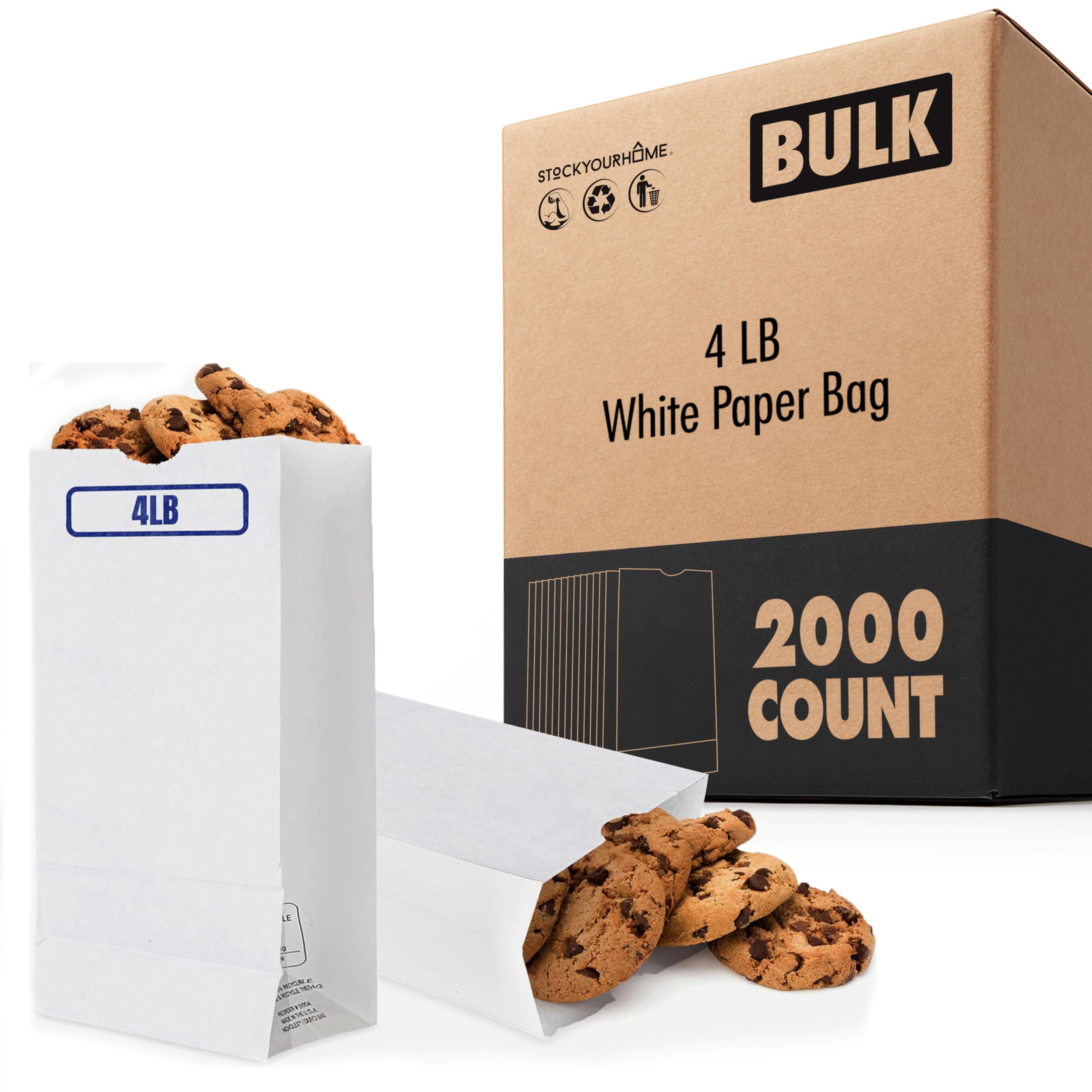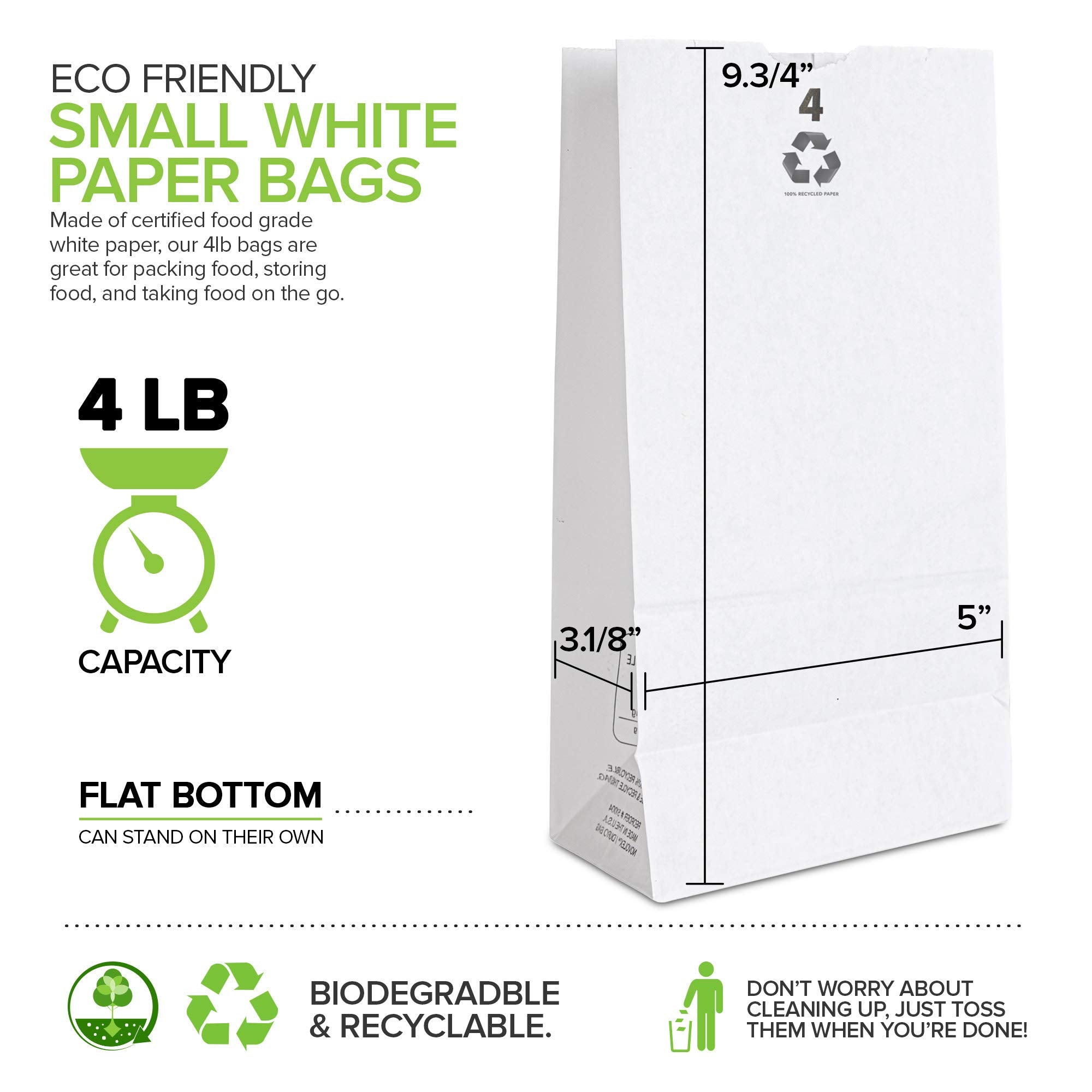 - Great Value Pack: Our value pack comes with 2000 kraft white paper bags with a 4 Lb capacity. Dimensions: 5