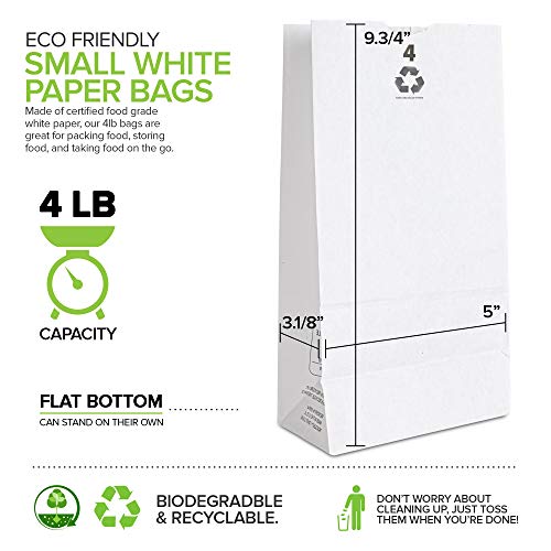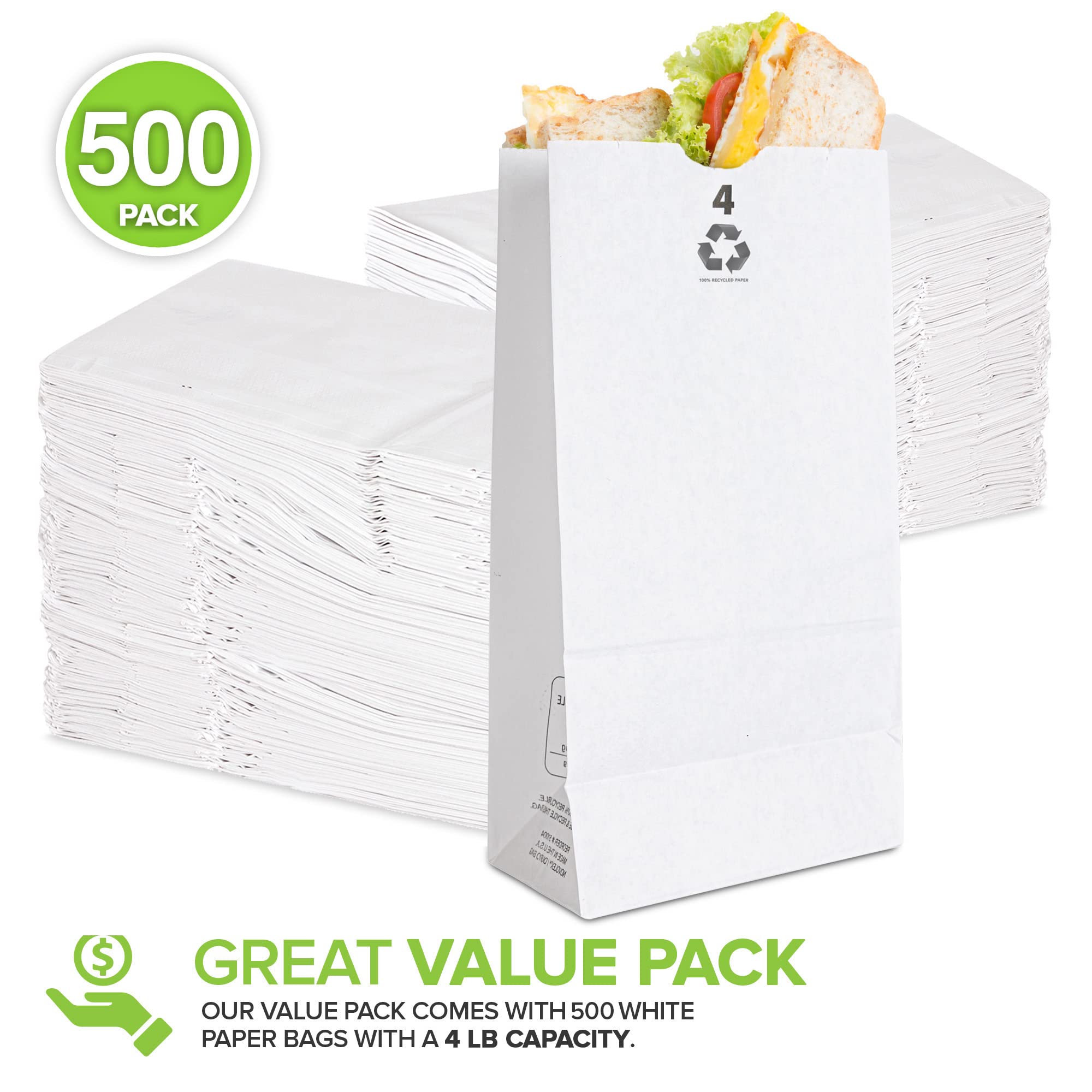 - Great Value Pack: Our value pack comes with 500 kraft white paper bags with a 4 Lb capacity. Dimensions: 5