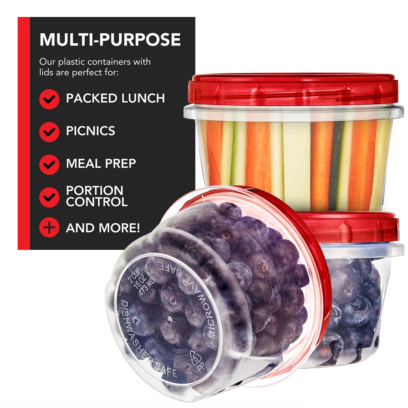- 16oz: Great Value: Our bulk pack of deli containers includes ten 16 ounce (1/2 cup) containers with red lids. Each container measures 4.75