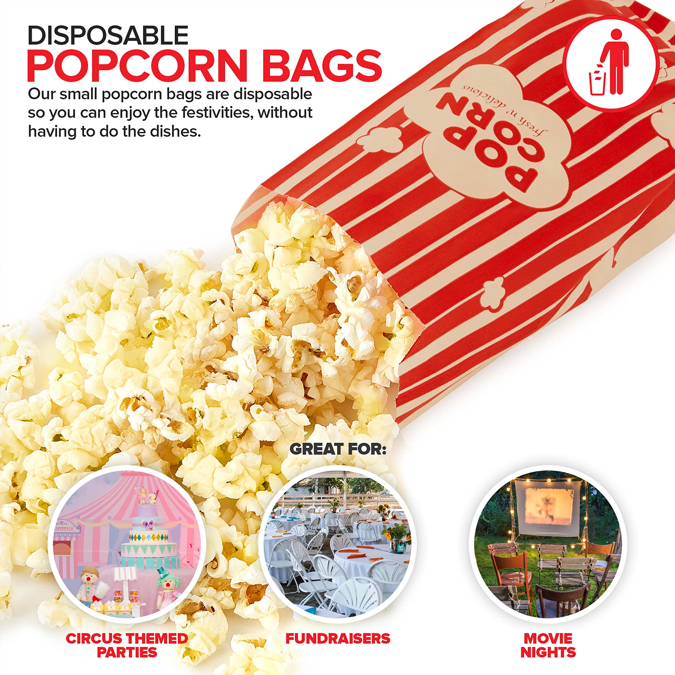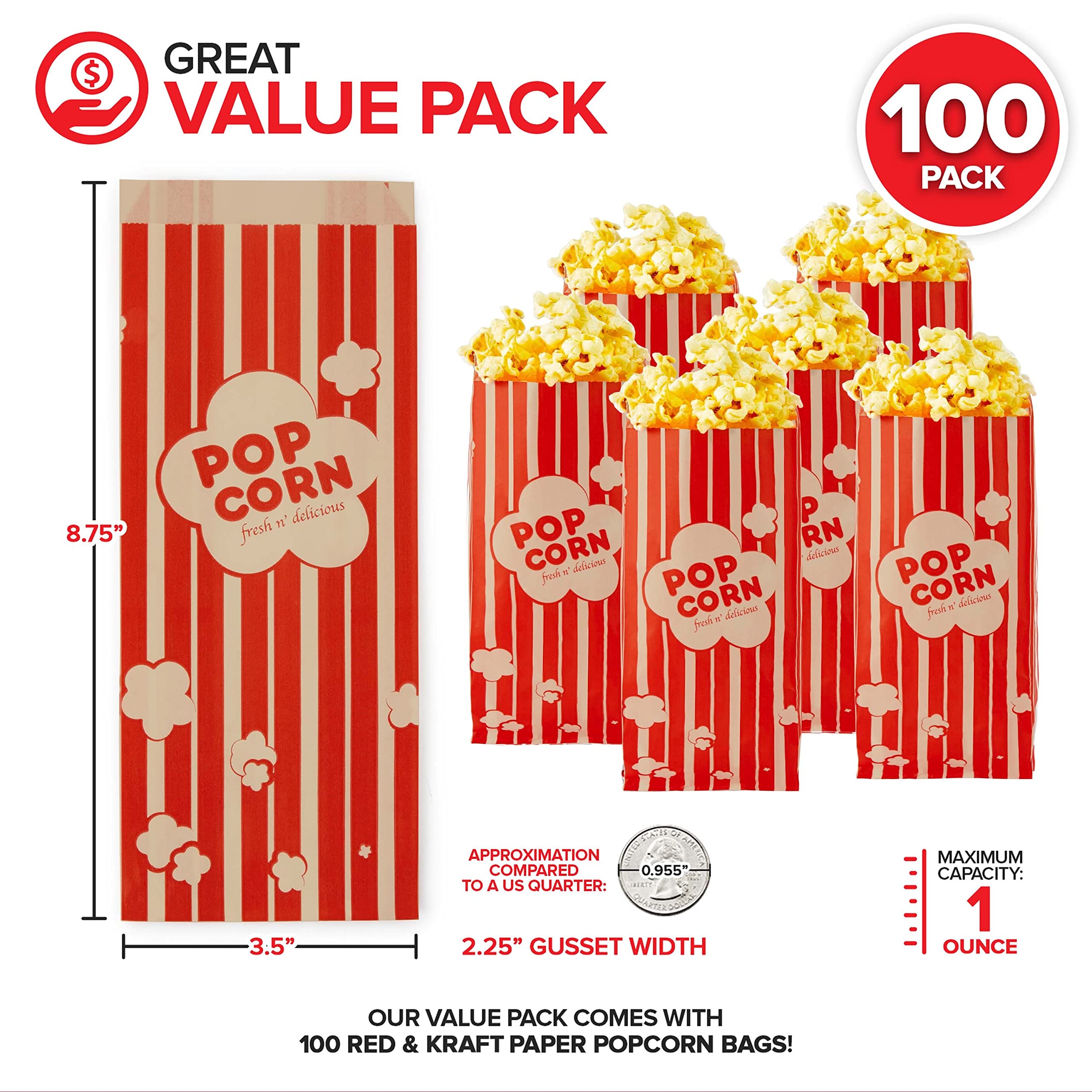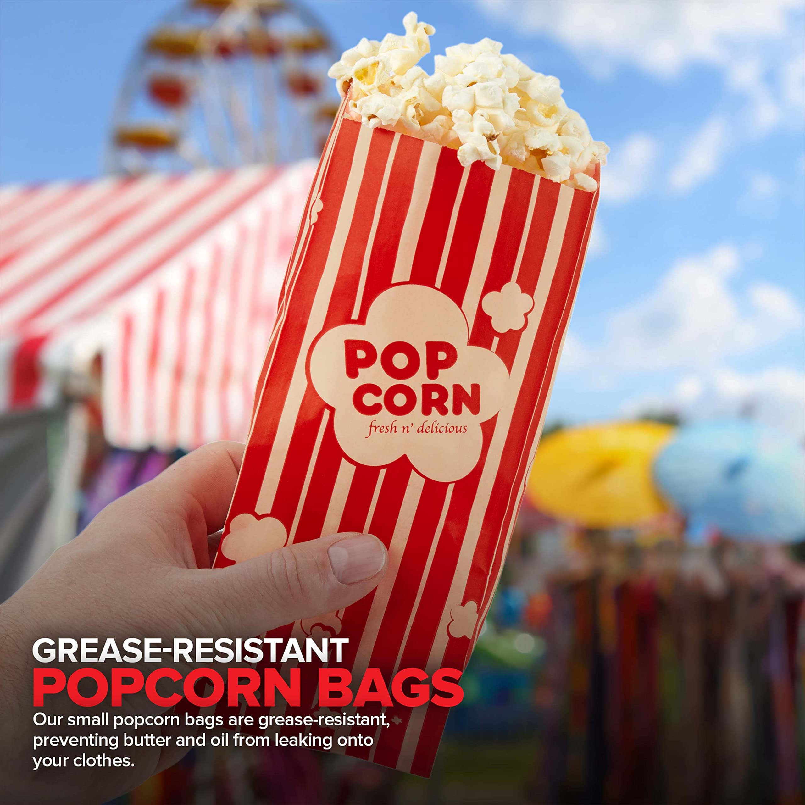Stock Your Home Vintage Popcorn Bags Proudly Made in the USA Stock Your Home Popcorn Bags will make your next movie night pop! With a 1-ounce capacity, our popcorn bags are the perfect snack-size for easy carry-out popcorn. Made from recycled paper, our retro-styled popcorn bags are grease-resistant, microwave safe, and recyclable - a great alternative to plastic and foam containers. Perfect for movies at home, parties, fundraising, festivals, fairs, amusement parks, and more! We've got popcorn bags in a variety of styles and sizes. View all below