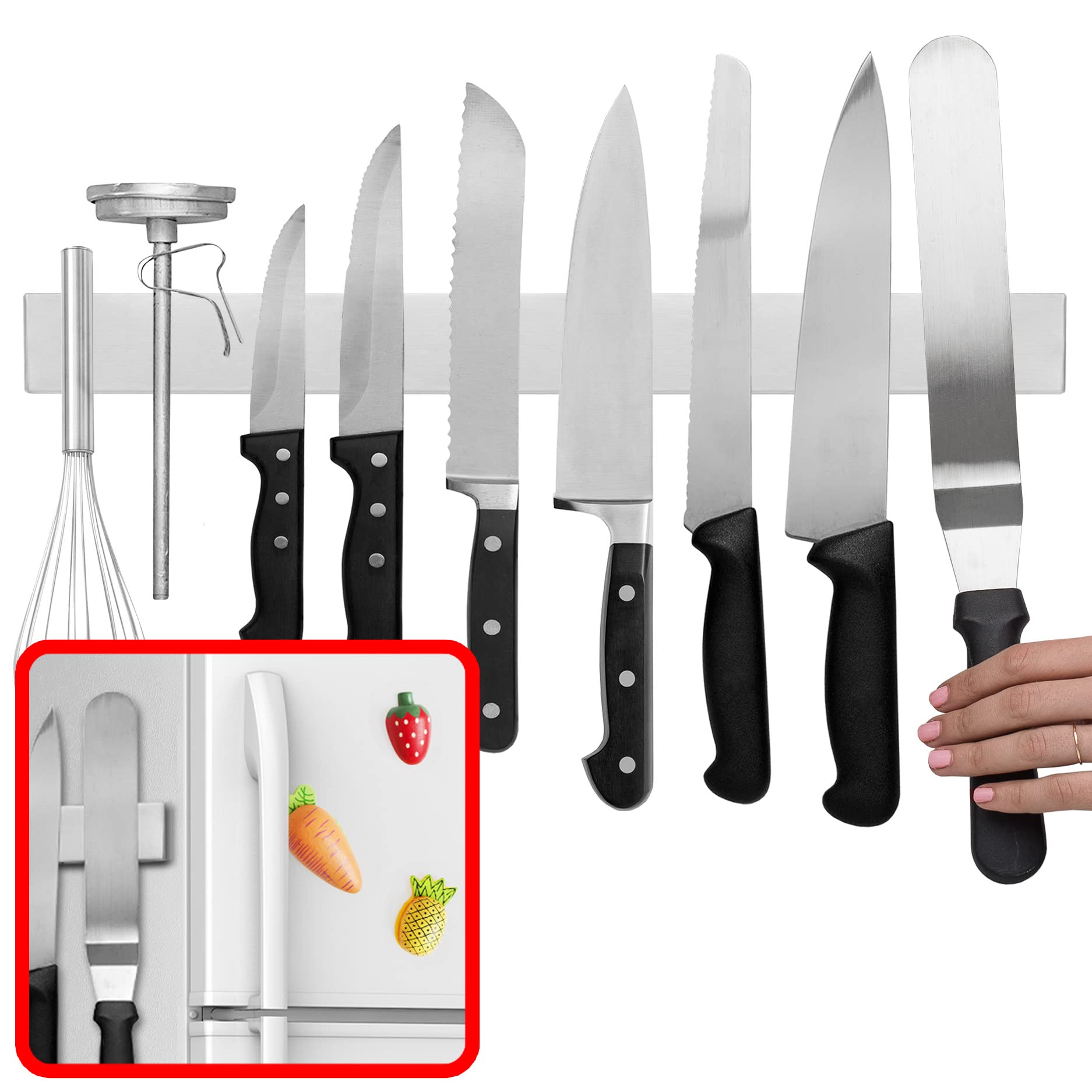 Attach Directly to Your Fridge: An upgraded design of our classic knife holder, this new and improved magnetic strip for knives attaches directly onto your refrigerator - no need for tools or drilling.