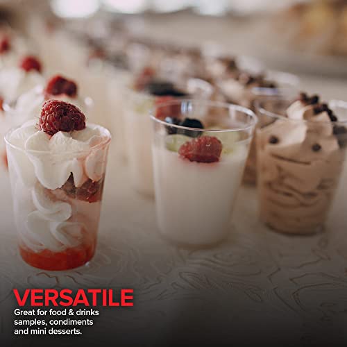 - Transparent: The crystal clear appearance makes our tiny taster cups a perfect choice for displaying rainbow colored jello shots, chocolate dessert shooters, food and wine samples, and more!