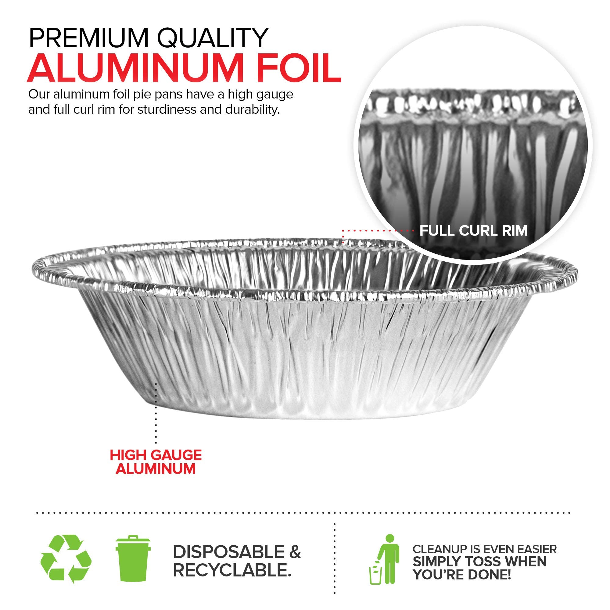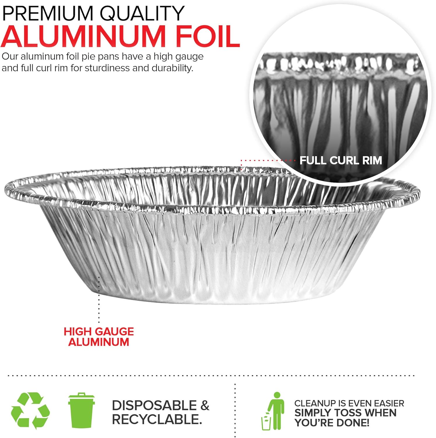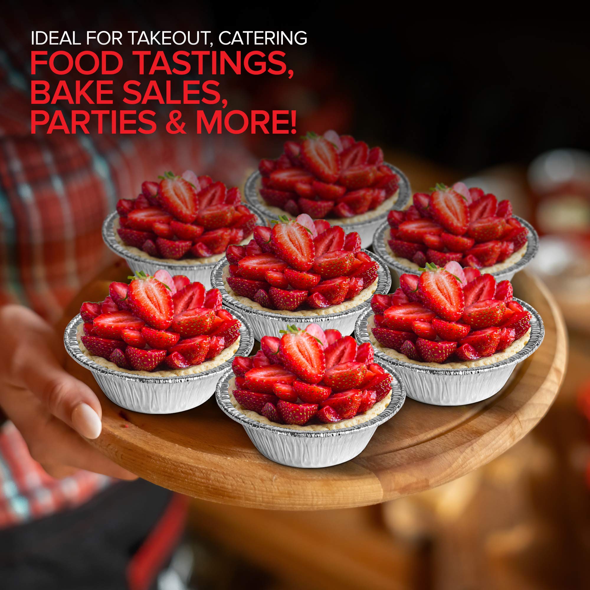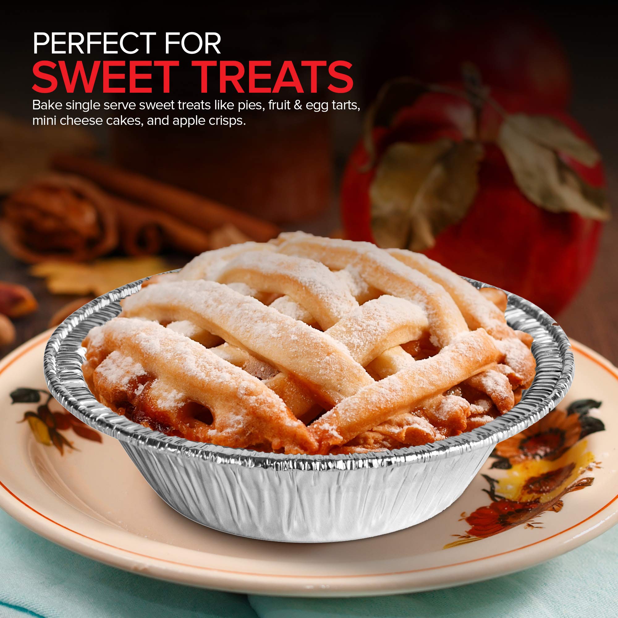 Premium Quality Foil Pie Pans: Made of premium quality, heavy-duty aluminum foil, our small disposable mini pie pans are designed to store, bake, and serve all in one tin! Great for takeout, catering, food tastings, bake sales and parties.