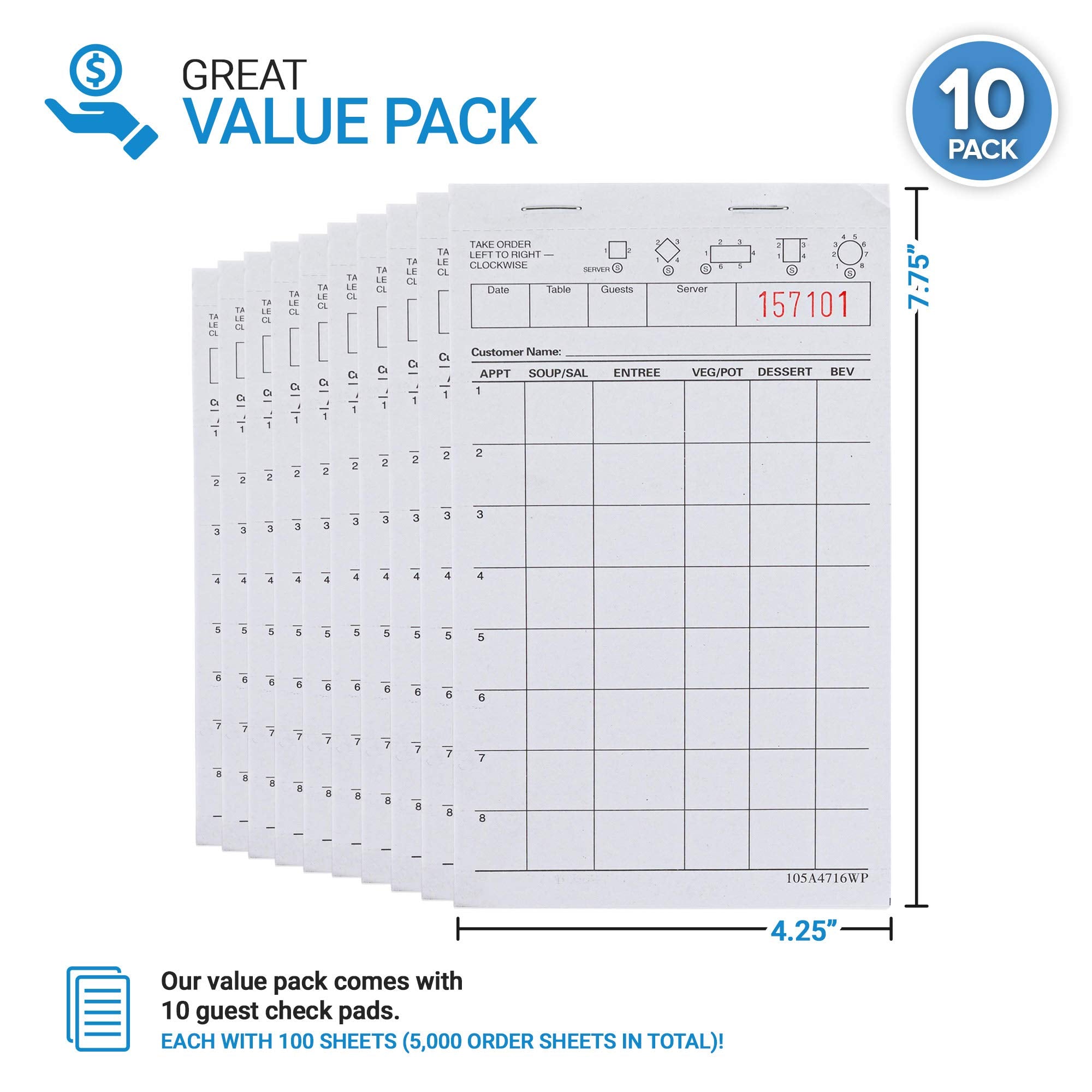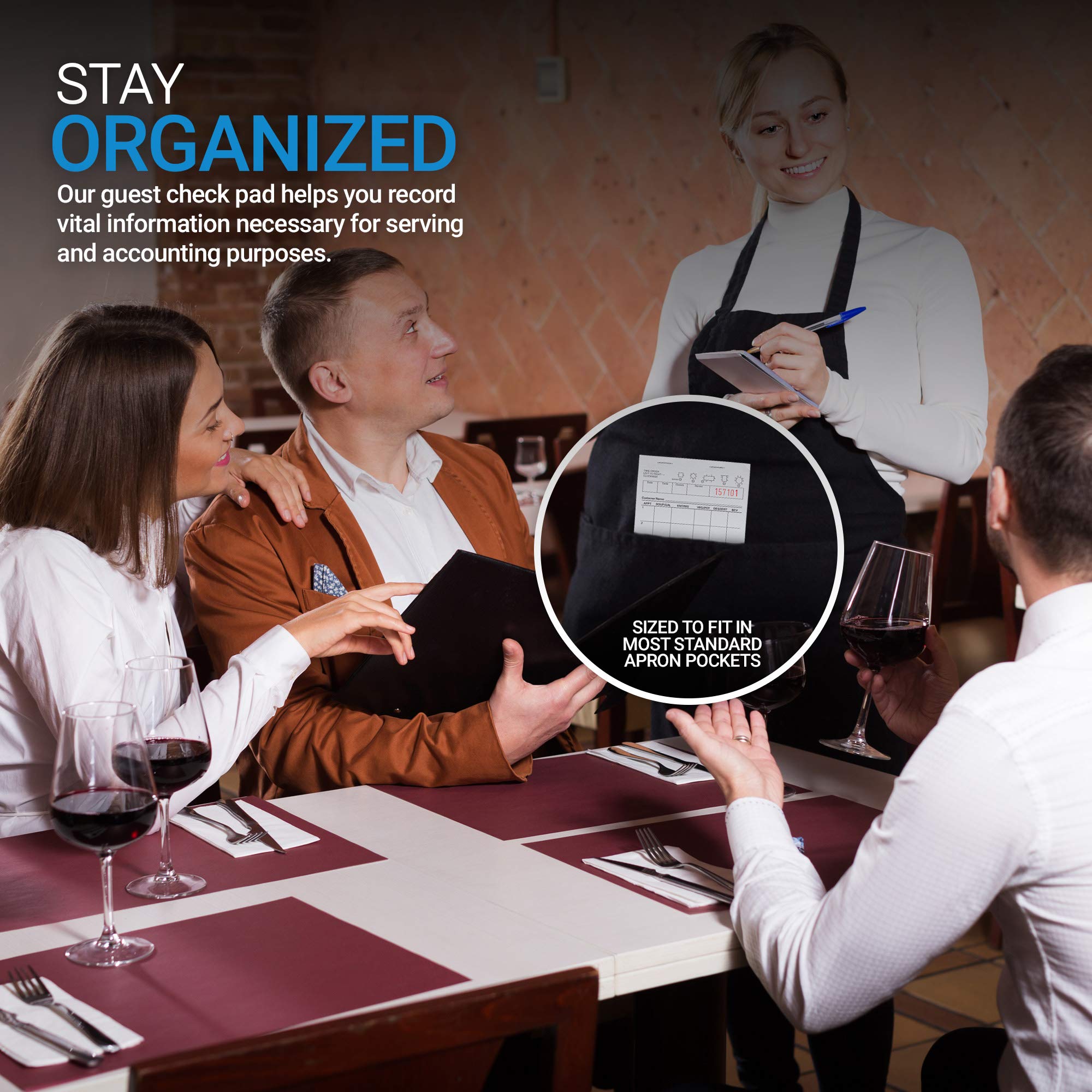 - Stay Organized: Stock Your Home White Guest Check Pads are perfect for any waitress, waiter or server. Sized to fit in most standard apron pockets, our server pads help you record vital information necessary for serving and accounting purposes.